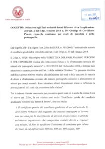 Circolare Ufficio Amministrativo 2017-08-31 – Certificato penale pedofilia – pedopornografia