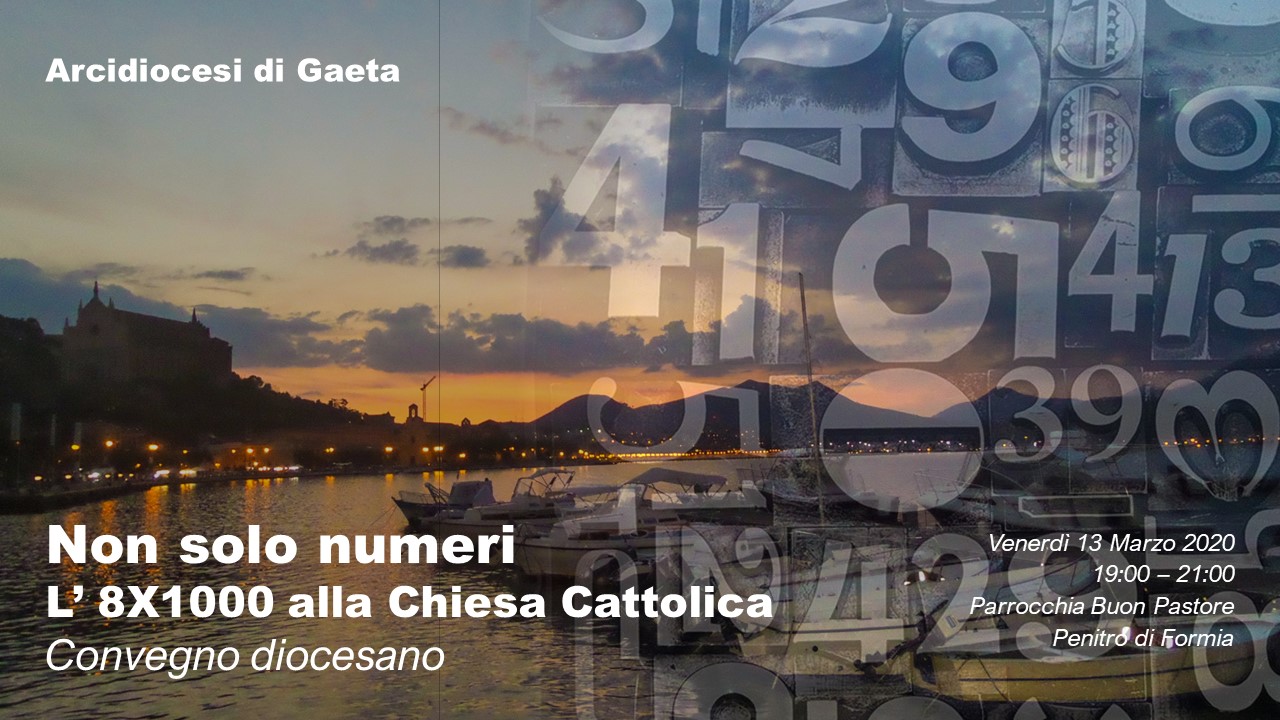 Venerdì 13 Marzo alle ore 19:00, presso la parrocchia del Buon Pastore a Penitro si terrà il Convegno Diocesano del Sovvenire sul tema: “Non solo numeri. L’8×1000 alla Chiesa Cattolica”. Attraverso questo appuntamento la Chiesa di Gaeta illustrerà le opere e gli interventi realizzati sul nostro territorio diocesano grazie proprio ai fondi ricevuti da questo sistema di sostegno economico e proporrà un’occasione formativa riguardo il funzionamento del Sistema 8×1000.