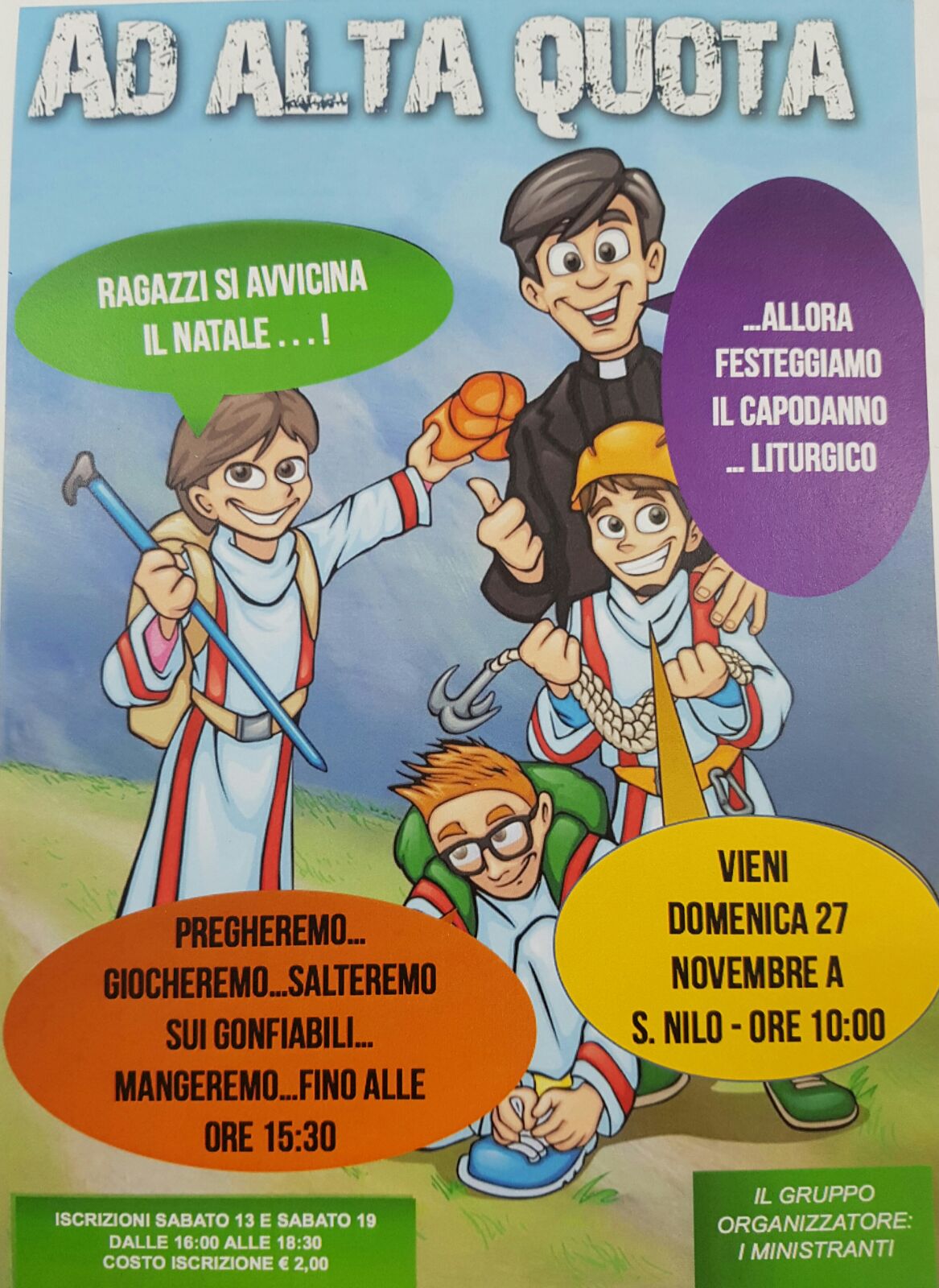 Domenica 27 novembre dalle 10 alle 15.30 i ministranti della Parrocchia S. Nilo Abate in Gaeta organizzano la festa “Ad Alta quota”.