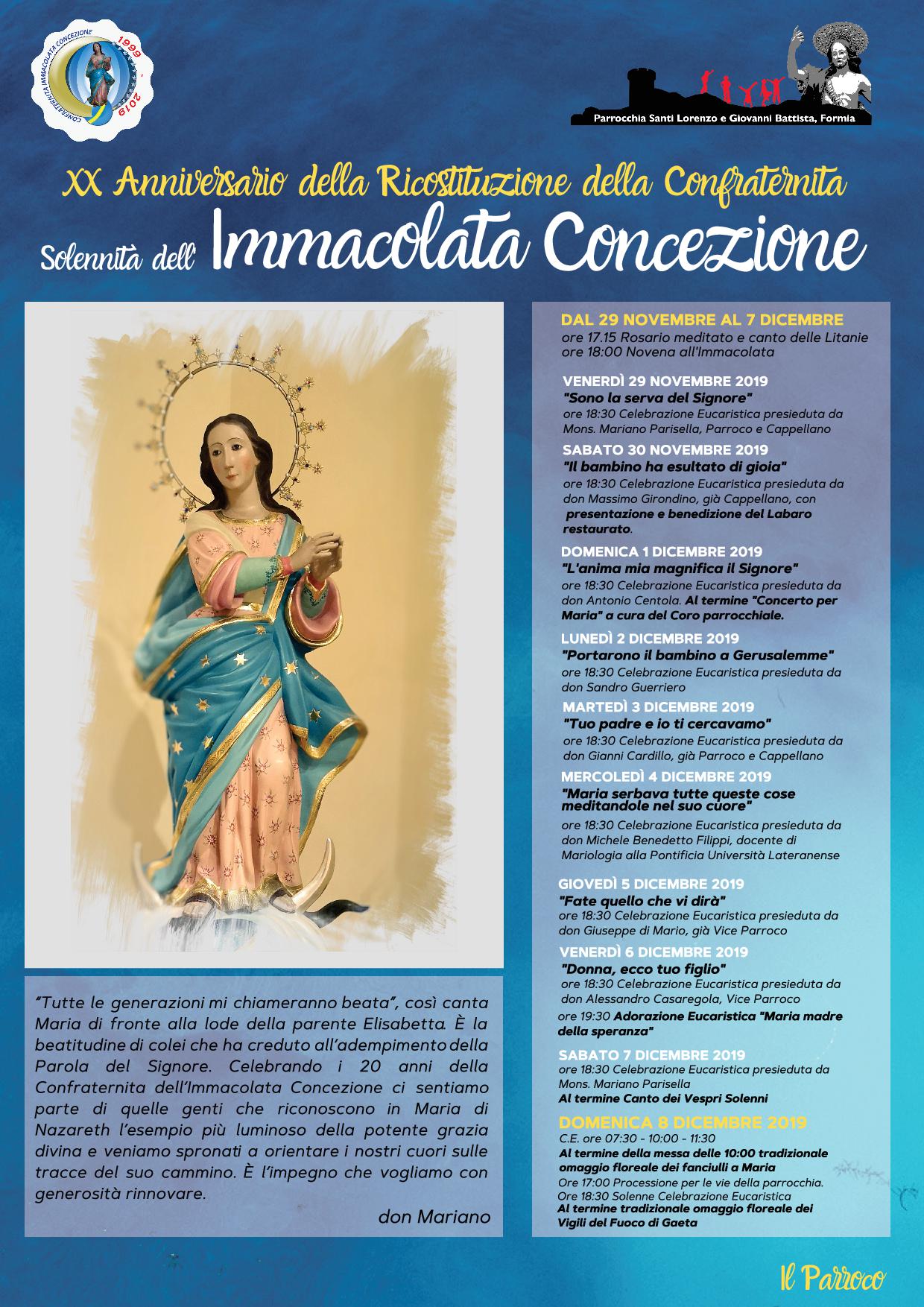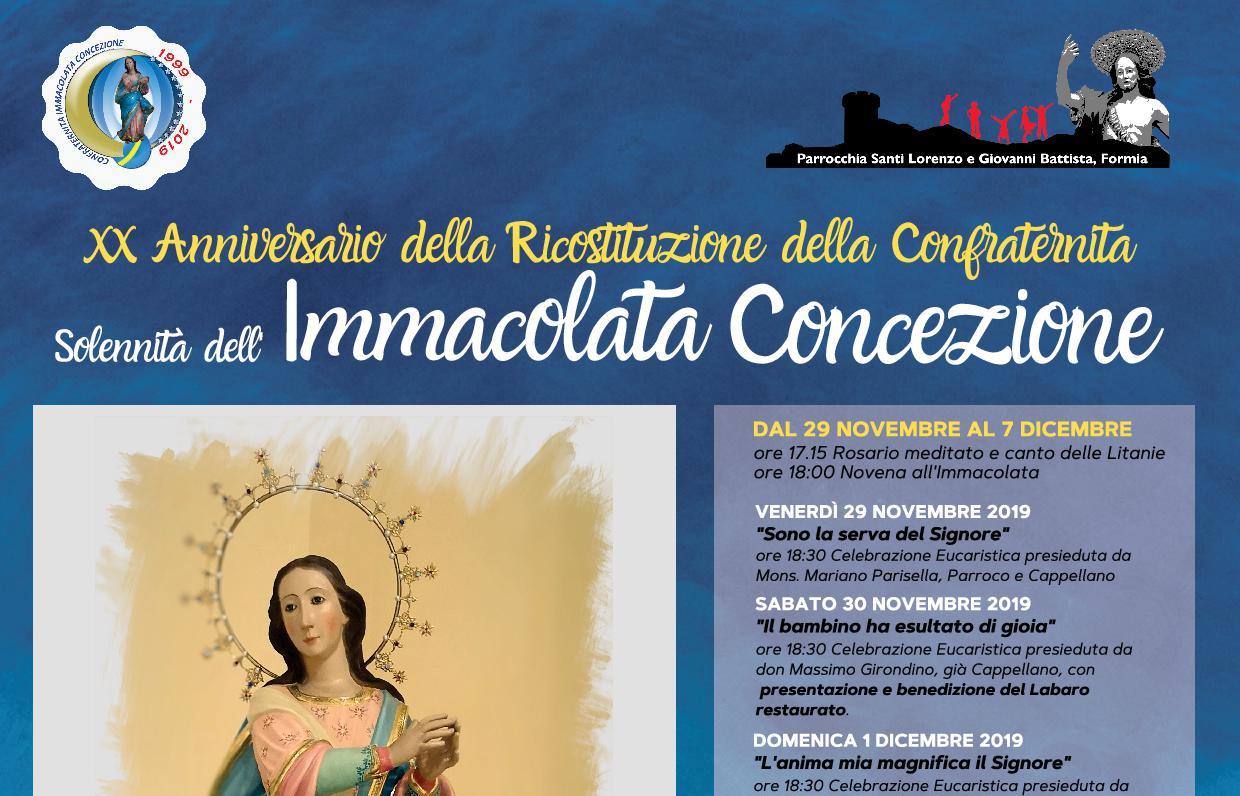La comunità parrocchiale dei Santi Lorenzo e Giovanni Battista di Formia si sta preparando alla solennità dell’Immacolata Concezione e ai festeggiamenti del ventennale della ricostituzione della confraternita dedicata alla Vergine Maria.