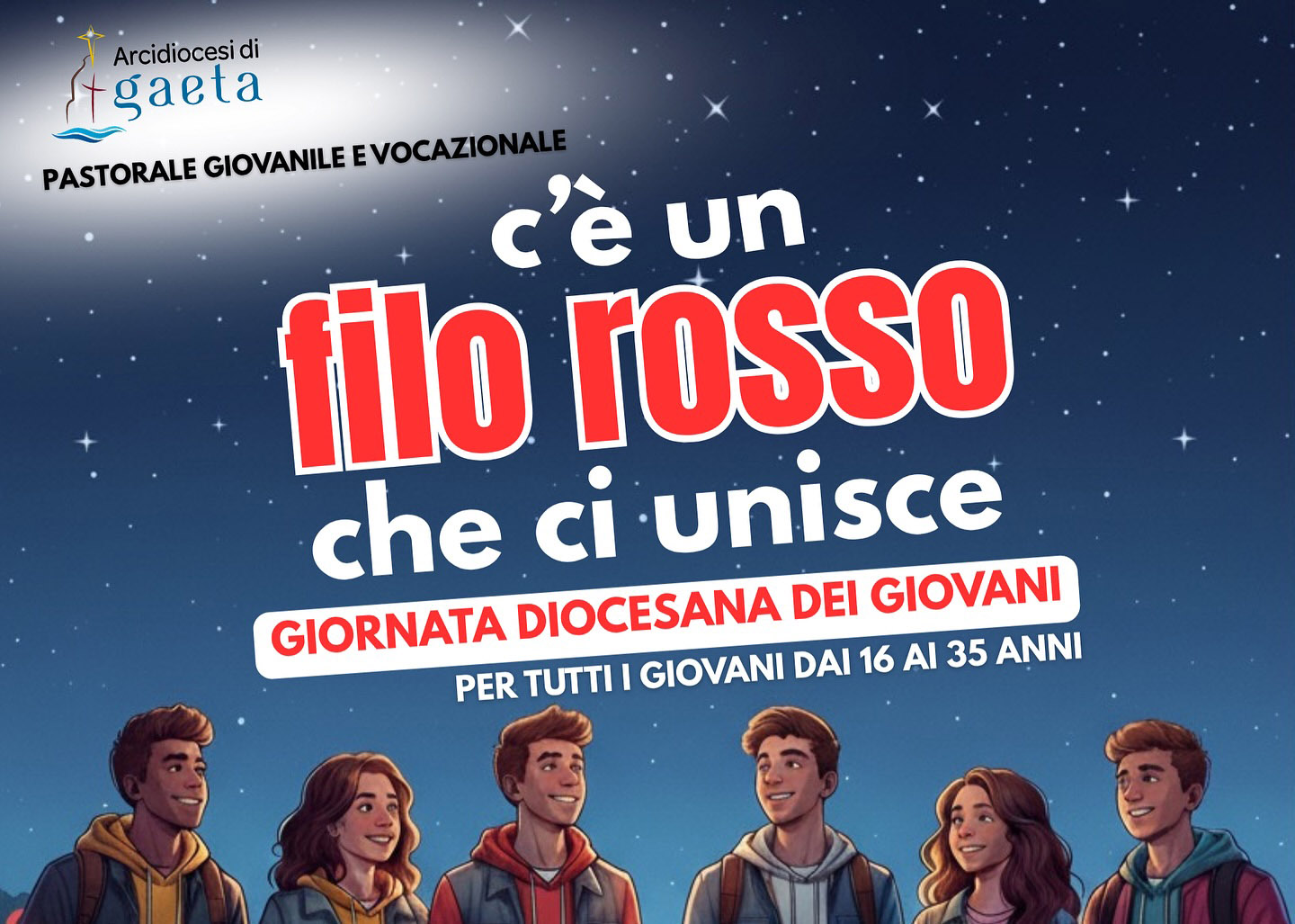Venerdì 21 novembre alle 20, presso la chiesa di sant’Erasmo di Formia, si terrà la Veglia di preghiera per la Giornata mondiale dei giovani, appuntamento che ogni anno la Chiesa celebra nella domenica di Cristo Re dell’Universo. Il tema scelto — “C’è un filo rosso che ci unisce” — guiderà un itinerario spirituale e simbolico che coinvolgerà adolescenti e giovani dai 16 ai 35 anni di tutta la diocesi.