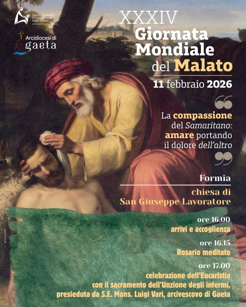 È in questo contesto che l’arcivescovo Luigi Vari ci invita a vivere in diocesi la Giornata Mondiale del Malato mercoledì 11 febbraio presso la Chiesa di San Giuseppe Lavoratore in Formia.