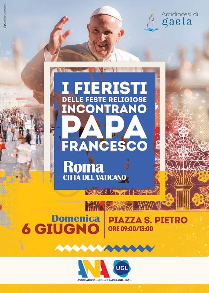 Domenica 6 giugno l’Associazione Nazionale Ambulanti UGL parteciperà in piazza San Pietro all’Angelus presieduto da papa Francesco. Lo hanno comunicato Ivano Zonetti, Angelo Pavoncello e Marrigo Rosato rispettivamente presidente, vicepresidente vicario e segretario nazionale di ANA-UGL.