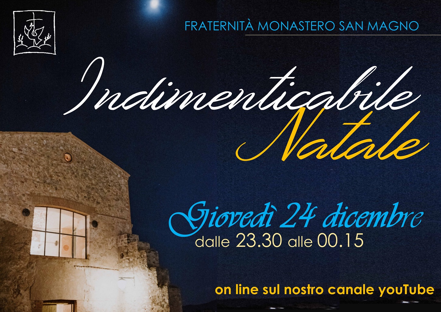 La fraternità del monastero di San Magno di Fondi invita tutti il 24 dicembre dalle 23.30 alle 00.15 tra poesia e musica, riflessione e meditazione, tra ascolto e silenzio nello stile e nell’atmosfera della Fraternità.