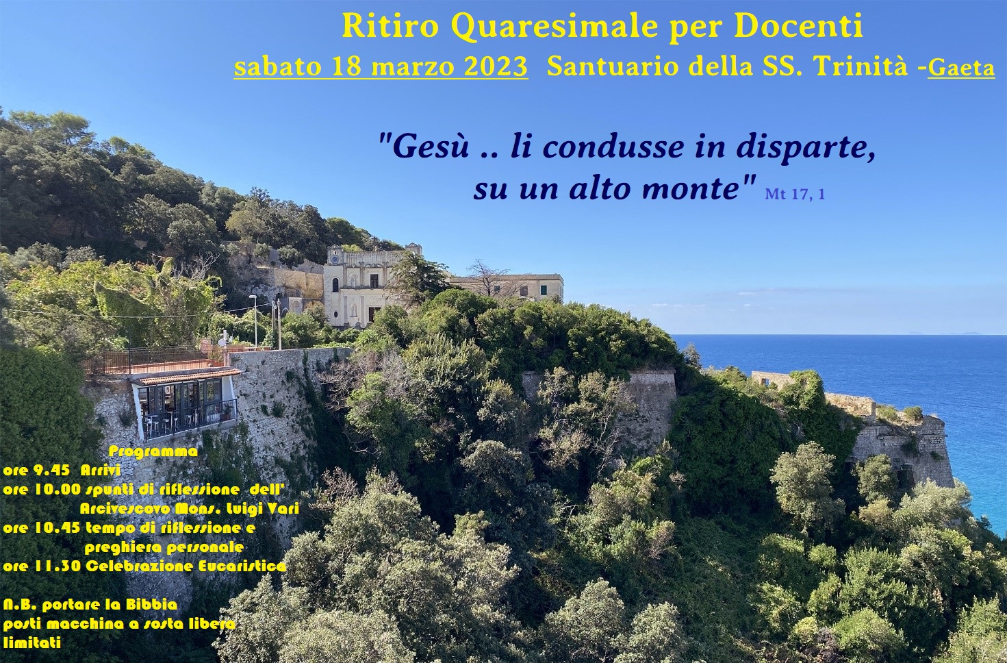 Sabato 18 marzo presso il Santuario della Santissima Trinità (Montagna Spaccata) a Gaeta, si proporrà una meditazione sul brano del vangelo di Matteo, la Trasfigurazione, un tempo di riflessione personale e la Celebrazione Eucaristica.