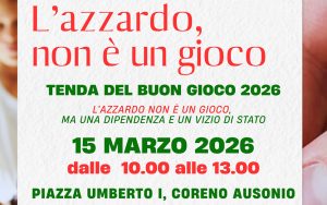 Il Tavolo di Lavoro contro l’Azzardo e di Cittadinanza Attiva, coordinato dalla Caritas Diocesana di Gaeta, organizza, con il Patrocinio del Comune di Coreno Ausonio, la Tenda del Buon Gioco il prossimo 15 marzo 2026, dalle 10.00 alle 13.00, in piazza Umberto I a Coreno Ausonio. Una mattinata di consapevolezza, informazione e gioco sano per […]