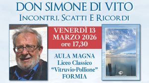 Venerdì 13 marzo 2026, alle ore 17.30, presso l’Aula Magna del Liceo Classico “Vitruvio-Pollione” di Formia, si terrà la presentazione del volume dedicato a don Simone Di Vito, già docente del liceo. L’iniziativa rappresenta un’occasione per ricordarne la figura attraverso testimonianze e racconti che ripercorrono l’impegno dell’insegnante, sotto il profilo umano, pastorale, culturale. Introdurranno l’incontro […]