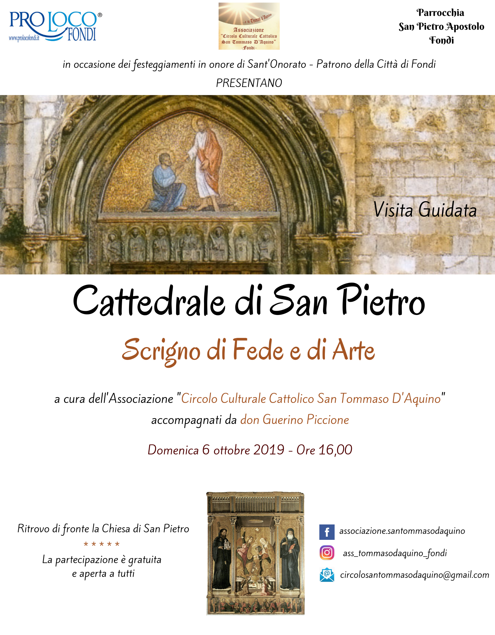 “Cattedrale di San Pietro: scrigno di Fede e di Arte”, questo il nome dell’iniziativa firmata dell’Associazione “Circolo Culturale Cattolico San Tommaso D’Aquino” di Fondi.